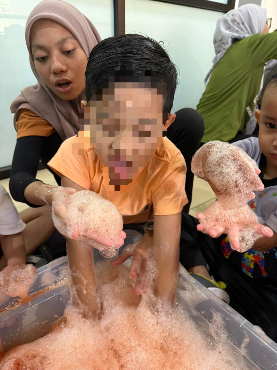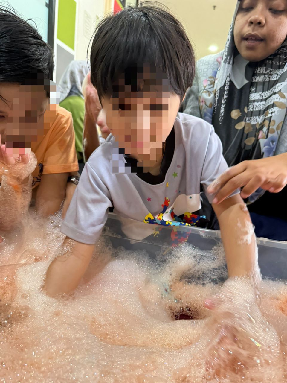 PROGRAM KHAS AKTIVITI SENSORY SCOOPING & TRANSFER AND BLOW THE BUBBLES